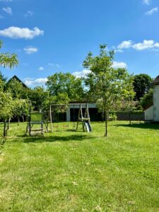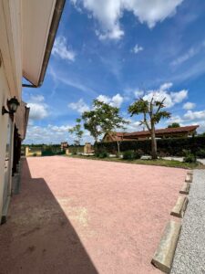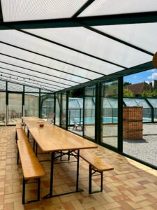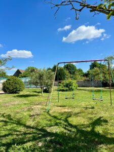 Dans un cadre verdoyant et entièrement aménagé, profitez d’un extérieur pensé pour la détente et le divertissement. La piscine extérieure de 9,5 m x 5 m, protégée par un dôme, vous permet de vous rafraîchir en toute sécurité. Les amateurs de sport apprécieront notre terrain multisport, la table de ping-pong et le terrain de pétanque, tandis que les plus jeunes s’amuseront sur les balançoires. Pour des moments conviviaux en plein air, salons de jardin, transats et un préau avec barbecue sont à disposition, offrant un cadre idéal pour partager repas et instants de détente.